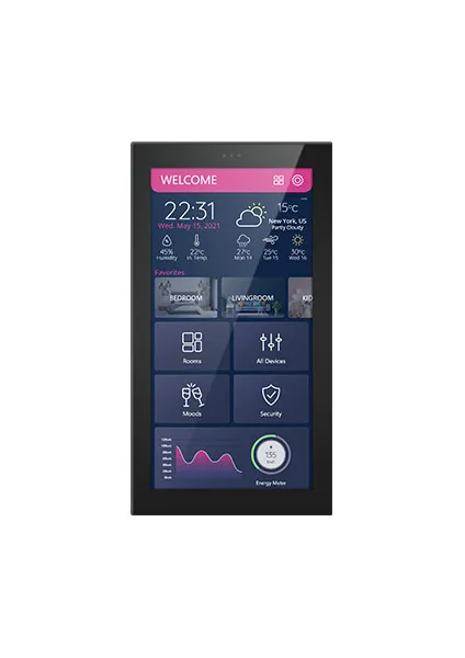 Intégrez une touche moderne à votre maison intelligente avec un écran tactile qui allie sophistication et simplicité d’utilisation.